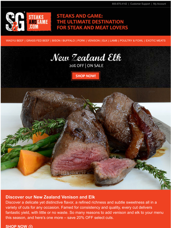 Steaks and Game Coupon Codes 2022 - Couponsoar.com Current available hot discount & promotion: 10% off any order is available from Steaks and Game. Move to place your order by using this discount code & voucher code at checkout. Use it before it gone! 5 days left 1810 Code $250 Free Standard Overnight shipping on orders over $250 Get Code > more