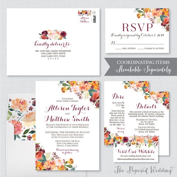 Printable OR Printed Fall Flower QR Code Insert Cards - Orange, Burgundy, and Pink Floral Wedding QR Code Card to Visit Our Website 0008