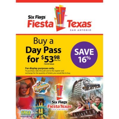 Six flags coupon san antonio. Frequently Asked Questions - Six Flags Great America No, Six Flags Great America is a pay one price facility. Because of the breadth of entertainment offered for all ages, Six Flags Great America & Six Flags maintains the pay-one-price policy for all Guests to enjoy the rides, slides, shows, and other entertainment. Six Flags Tickets & Passes | Over Georgia in Atlanta, GA Purchase Six Flags tickets here or get a Pass and enjoy unlimited thrills all year. Make family fun & memories at Over Georgia. Six Flags Tickets & Passes | Fiesta Texas in San Antonio, TX Purchase Six Flags tickets here or get a Pass and enjoy unlimited thrills all year. Make family fun & memories at Fiesta Texas. Best Six Flags Coupons 2022: Discounts, Online Coupon Codes ... Save up to 55% on Six Flags New England tickets with the Go Boston Card. Go Card San Francisco includes Six Flags Discovery Kingdom tickets. San Diego Go Card has Six Flags Magic Mountain. The San Antonio Go Card on Groupon includes Six Flags Fiesta Texas along with SeaWorld, Tours, iFly, San Antonio Zoo, kids activities, and museums.